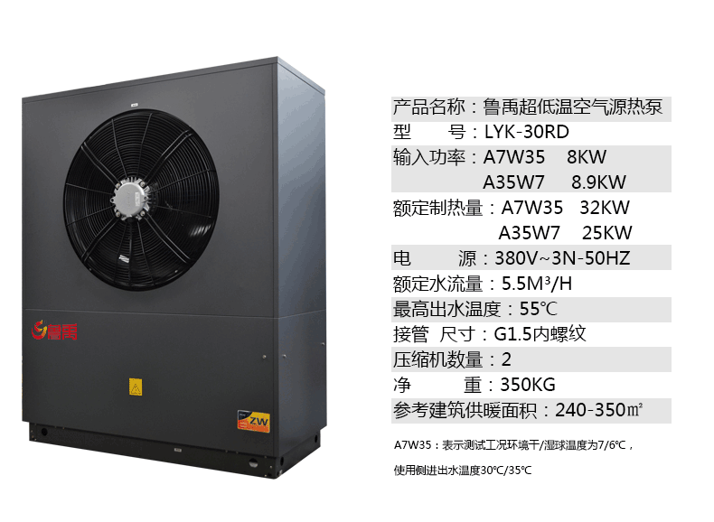 魯禹家用空氣源熱泵供暖機(jī)組由壓縮機(jī)、冷凝器、膨脹閥、蒸發(fā)器等部件組成。在室外熱能轉(zhuǎn)移過(guò)程中,每消耗1份電能,就可以為室內(nèi)提供4份的熱量(根據(jù)不同運(yùn)行狀態(tài),該值也會(huì)有所不同)。