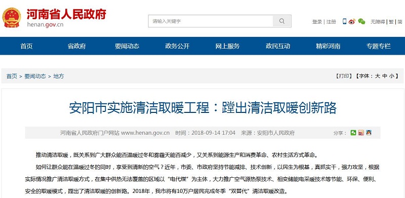 安陽市人民政府運用空氣源熱風機結合相變儲能蹚出清潔取暖創(chuàng)新路