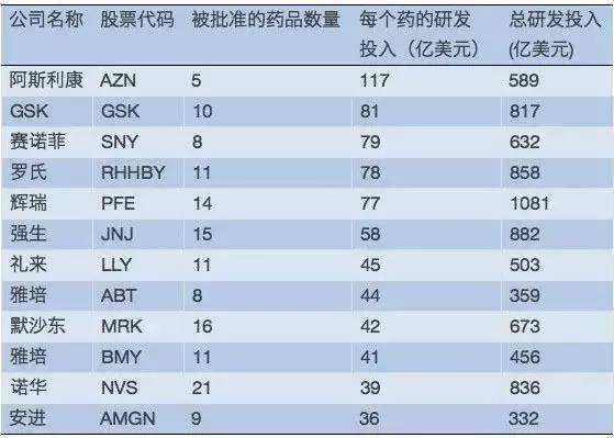 福布斯公布的全球主要跨國(guó)藥企近年研發(fā)支出