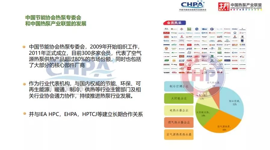 中國(guó)熱泵產(chǎn)業(yè)聯(lián)盟于2009年開始在我國(guó)熱泵行業(yè)組織與空氣源熱泵產(chǎn)業(yè)相關(guān)的工作,2014年8月正式通過民政部批準(zhǔn),注冊(cè)為中國(guó)節(jié)能協(xié)會(huì)熱泵專委會(huì),是中國(guó)節(jié)能協(xié)會(huì)下設(shè)分支機(jī)構(gòu)之一。目前協(xié)會(huì)具有300多家會(huì)員,代表了空氣源熱泵供熱產(chǎn)品超過80%的市場(chǎng)份額,同時(shí)也包括了大部分核心部件廠商。中國(guó)節(jié)能協(xié)會(huì)熱泵專業(yè)委員會(huì)作為行業(yè)代表機(jī)構(gòu),與國(guó)內(nèi)權(quán)威的節(jié)能、環(huán)保、可再生能源、暖通、制冷、供熱等行業(yè)政府主管部門及相關(guān)行業(yè)協(xié)會(huì)通力協(xié)作,持續(xù)推進(jìn)熱泵行業(yè)的發(fā)展。與此同時(shí),專委會(huì)還與IEA HPC、EHPA、HPTCJ等國(guó)際產(chǎn)業(yè)機(jī)構(gòu)建立長(zhǎng)期合作關(guān)系。