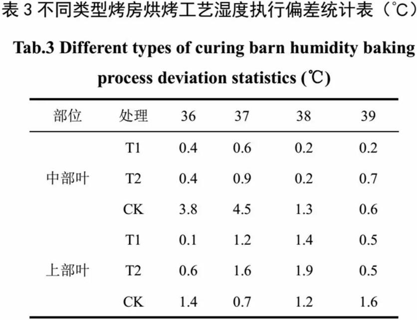 在溫度達(dá)到38℃、42℃、47℃(中部葉)和48℃(上部葉)、54℃時(shí),測定實(shí)際溫濕度與目標(biāo)溫濕度的偏差。