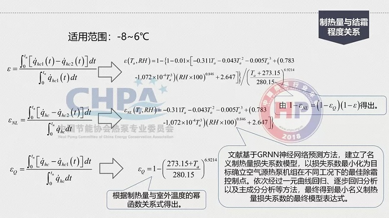 這些都是通過一些數(shù)學(xué)模型進(jìn)行的物理現(xiàn)象分析,針對(duì)制熱量與結(jié)霜程度的關(guān)系,通過這樣的一個(gè)數(shù)學(xué)模型我們進(jìn)行了計(jì)算;但是針對(duì)于制熱量與結(jié)霜的物理現(xiàn)象,在各個(gè)室外溫度的條件下,都采用同一個(gè)數(shù)學(xué)模型,它的計(jì)算結(jié)果偏差比較大,所以在這里面對(duì)于不同的室外溫度情況,采用的數(shù)學(xué)模式有所變化。