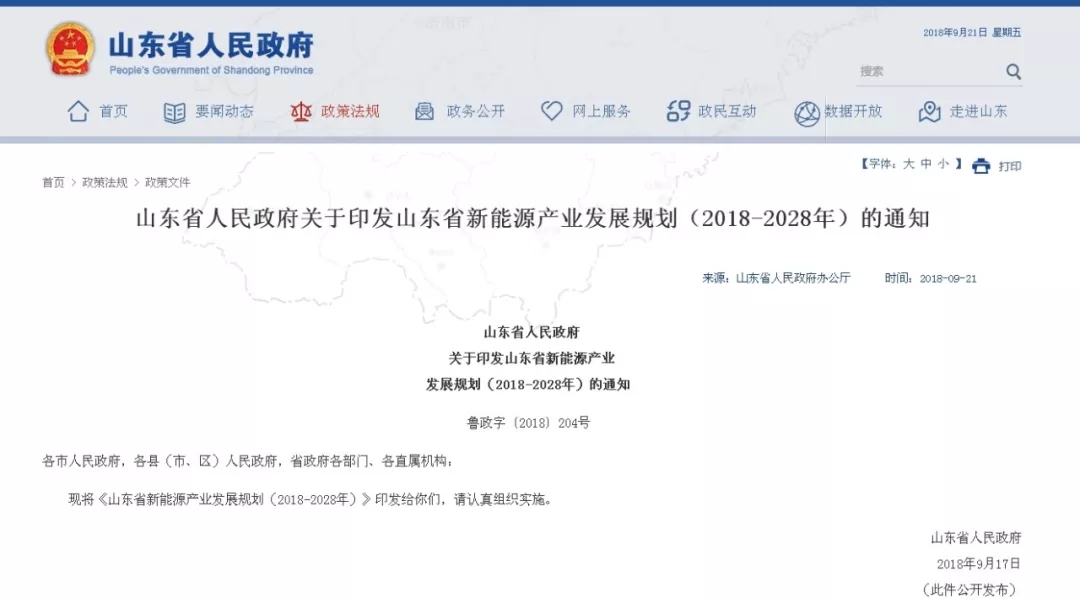 2018年9月21日,山東省人民政府發(fā)布《山東省新能源產(chǎn)業(yè)發(fā)展規(guī)劃(2018-2028年)》,指出新能源產(chǎn)業(yè)規(guī)模不斷壯大。到2022年,山東省新能源產(chǎn)業(yè)總產(chǎn)值力爭達到7000億元,產(chǎn)業(yè)增加值力爭達到2400億元。到2028年,新能源產(chǎn)業(yè)總產(chǎn)值、增加值力爭分別達到12000億元和4000億元,成為山東省新的重要支柱產(chǎn)業(yè)。