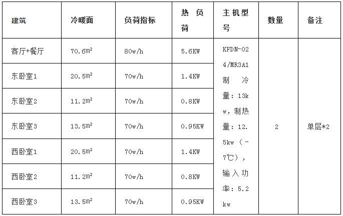 客戶為小區(qū)別墅,一共兩層半,其中第三層主要用于儲物及隔熱,不做采暖,廚房衛(wèi)生間不做采暖,主要居住1層和2層,三世同堂,有老人和孩子,屬于抵抗力相對較弱群體,建議采暖用地暖,制冷用風盤,制冷控制在26℃左右,采暖控制在18℃左右。