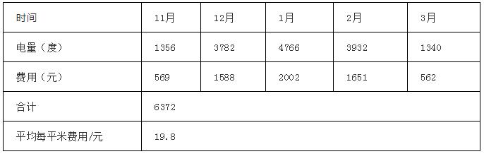 通過一個冬天檢測,室內采暖溫度設置恒溫20℃左右采暖,運行數(shù)據(jù)如表4。據(jù)客戶反饋,一個采暖季下來才六千多元,平均一個月僅1200多元,節(jié)能明顯?蛻舯硎荆骸翱諝庠礋岜貌膳Ч芎,相比燒煤舒服多了,省去了很多麻煩,運行費用也不高!