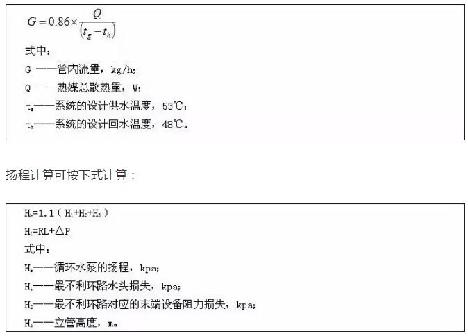 根據(jù)系統(tǒng)流量及最不利環(huán)路壓力損失計算(參考《民用建筑供暖通風與空氣調節(jié)設計規(guī)范》計算方法)得出所需流量和揚程,同時保證系統(tǒng)3~8℃運行溫差,經(jīng)查看原水泵流量及揚程皆滿足該項目使用。