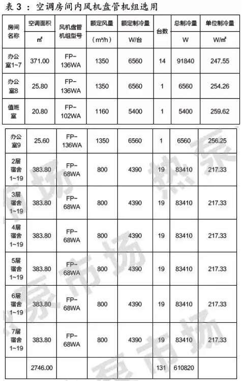 本項(xiàng)目風(fēng)機(jī)盤管選型結(jié)果如表3:
