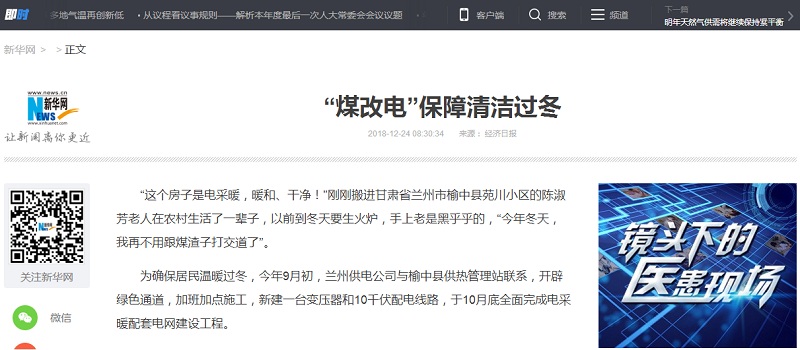 新華網(wǎng):空氣源熱泵,蓄熱式電鍋爐等“煤改電”設(shè)備保障清潔過(guò)冬