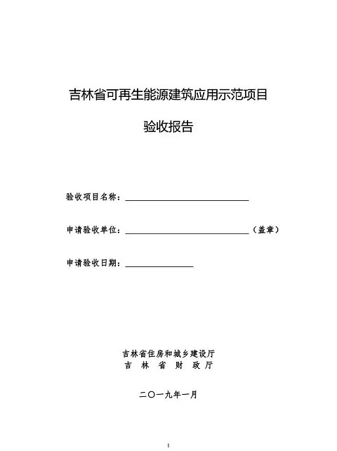 1.《吉林省可再生能源建筑應(yīng)用示范項目驗收報告》一式三份;