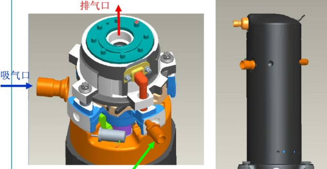 嚴(yán)格來說,所謂的“噴氣增焓”技術(shù)是建立在一個完整的系統(tǒng)上的,系統(tǒng)由噴氣增焓壓縮機、熱水換熱器、蒸發(fā)器等特殊部件組成。但是在其中起著核心作用的是壓縮機,那么什么是噴氣增焓壓縮機呢?